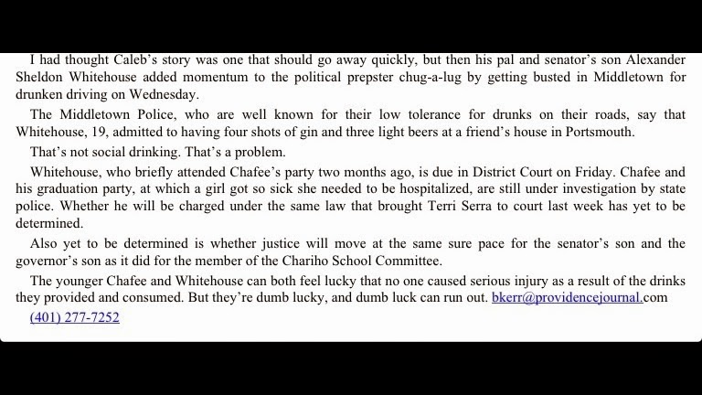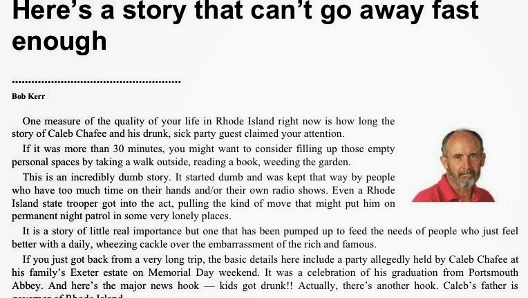 Comrade Bob Kerr of the Providence Journal wrote a column last summer where he defended the underage drinking party held by the son of Governor Gump. To Kerr it was ” silly” for people to be concerned a young girl passed out and was tossed from the Chafee property like used ” trash”. John DePetro blasted Kerr on the radio for such an irresponsible attitude involving teen drinking and driving. Kerr than turned on a dime when the son of Senator Whitehouse was hit with a DUI, claiming ” their luck” had run out. Luck? Kerr has a pattern of mocking anyone who listens to talk radio and disagree’s with his view point. Much like his hero John Kerry, he flip flops on all topics.
