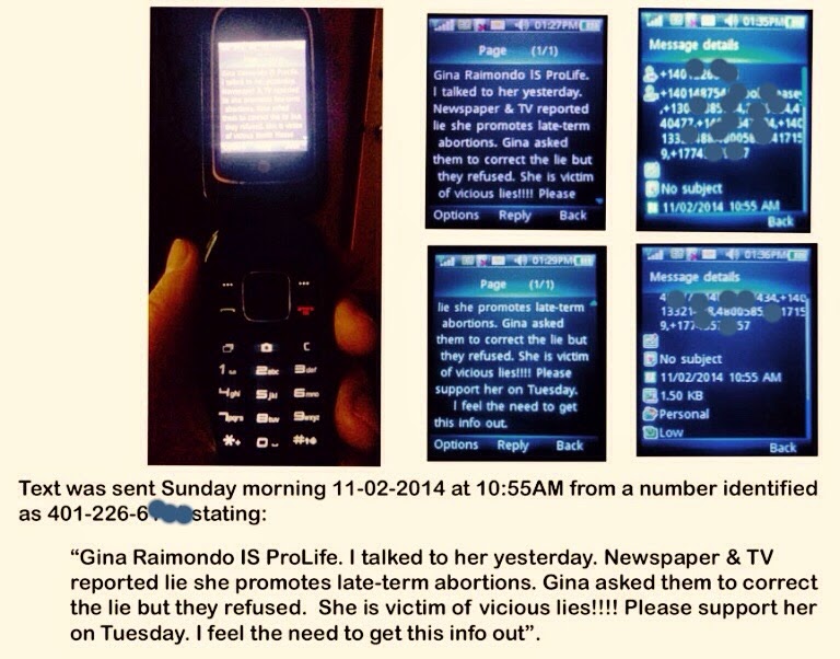 People around the state were shocked to receive an interesting text message: Gina Raimondo is Pro-Life. The woman who answered the phone that sent it out the text, Anne Paterson, claims she approached Gina outside church and the Democrat candidate claims the media has lied about her position and she is Pro-Life. At this time, there is no known connection to this message and the campaign.