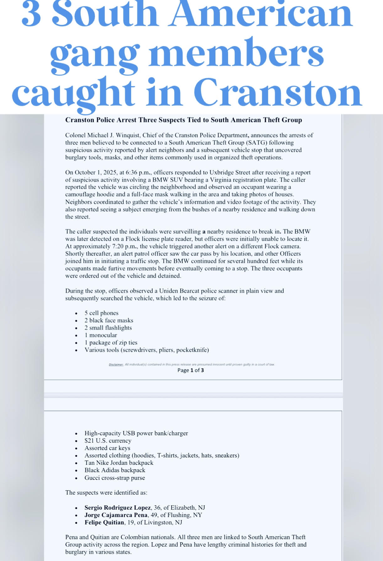 Video; Cranston Police grab 3 South American gang members Post author:talkerpro Post published:October 3, 2025 Post category:Cranston PD Live / cranston police / John DePetro radio / John DePetro Rhode Island / rhode island Post comments:0 Comments Please Share This Share this content Opens in a new window Opens in a new window Opens in a new window Opens in a new window Opens in a new window Opens in a new window Opens in a new window Opens in a new window Opens in a new window Opens in a new window You Might Also Like Exclusive: Board of Elections official claims over 20,000 illegal aliens voted in 2018 Rhode Island election October 28, 2019 Can Speaker Mattiello survive? October 21, 2019 How Burrillville high school got set up by the progressive left October 15, 2019
