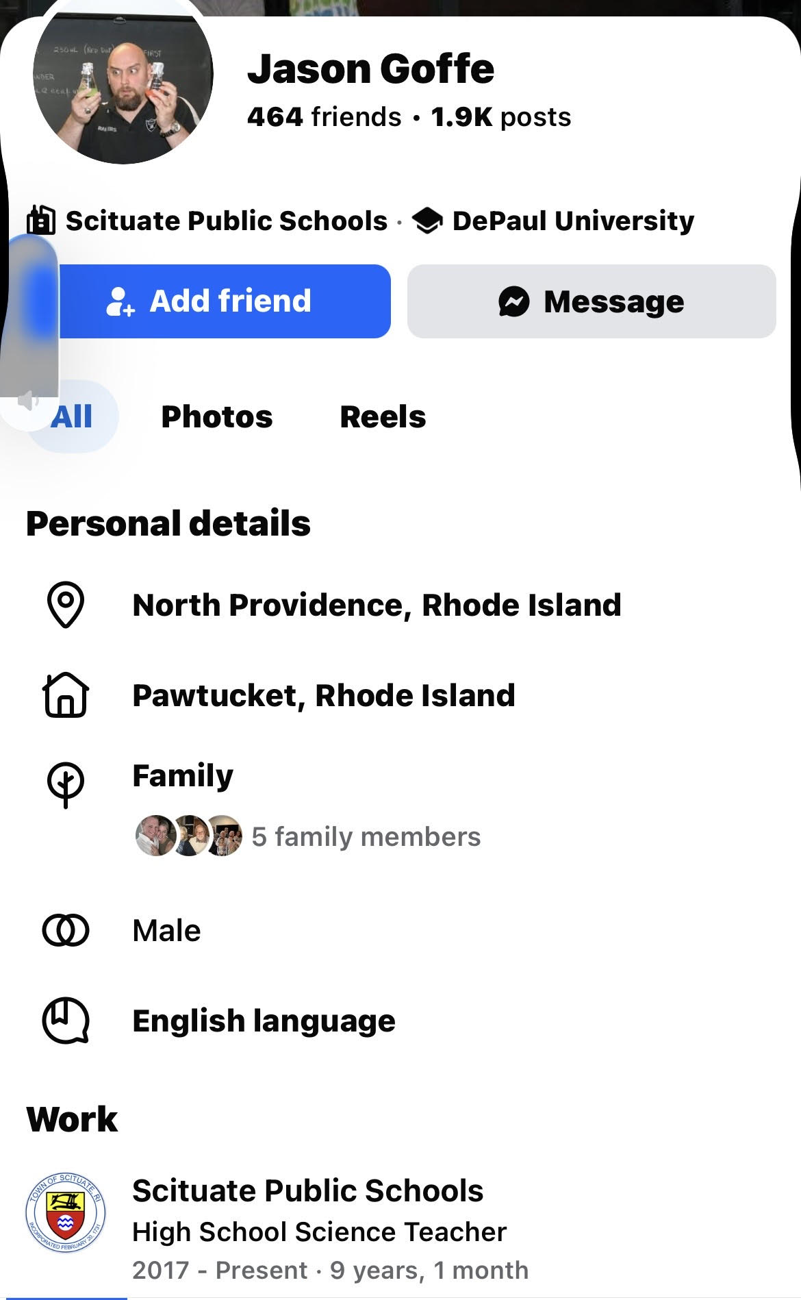Meet public school teacher Jason Goffe, who is a science teacher at Scituate high school in Scituate Rhode Island. A parent reached out to DEPETRO.com after she claims her Christian son was told by Mr Goffe, ” God does not exist.” The parent claims Goffe would make dirty looks at her son, forcing the child to leave the class. The parent claims she approached the school administration was was basically blown off, being told Jason Goffe is “entitled to his beliefs.” Look at the postings from Goffe on a Facebook page titled, ” giving middle fingers to end religion.” All the posts by Goffe and the group seem to target Christianity. Jesus is Gay, Jesus getting his nails done etc. Why is this tolerated? Would the public schools tolerate antisemitic posts and ridicule? What if Goffe was posting ridicule about Mosques? The Supreme Court decided that prayer is not allowed in the public schools, however, how is it permissible for a any teacher to openly mock, ridicule and insult believers of Christ? All of this going on in Rhode Island,(during Lent) in the state with the largest per capita of Catholics in the country (41%). Is it the role of a teacher to tell a student “God does not exist?” Complete disgrace.